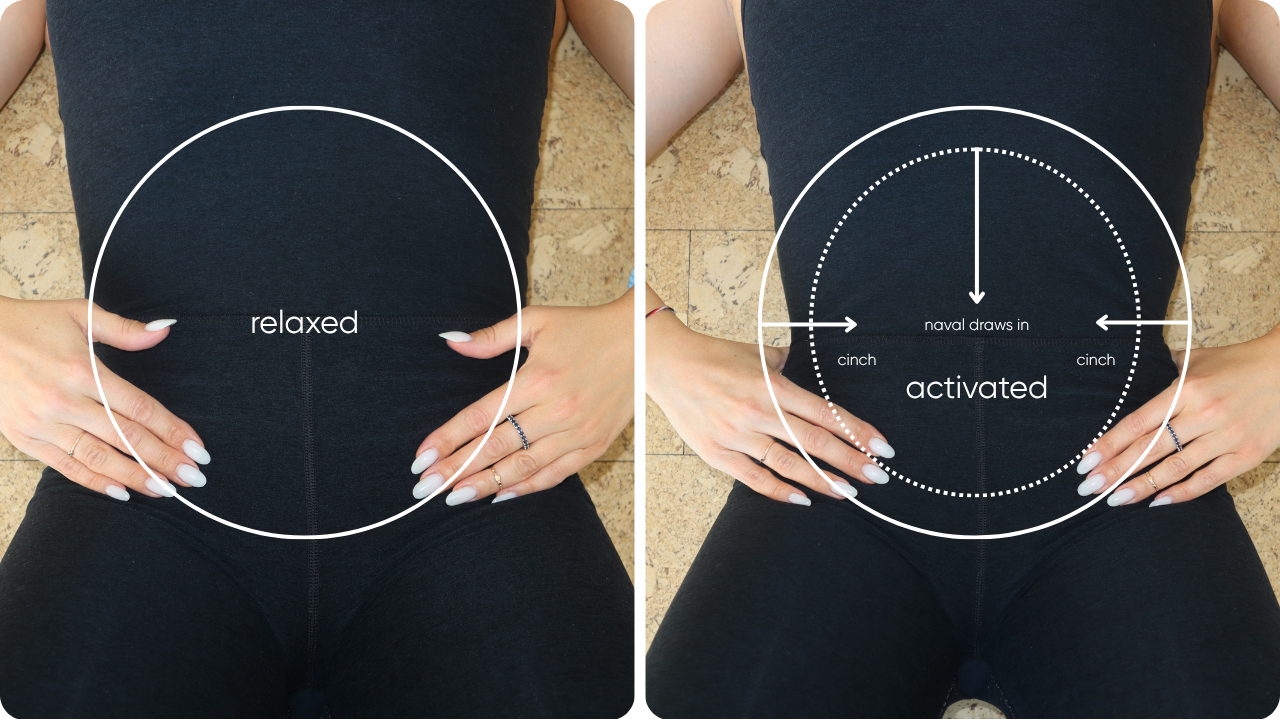 I like to imagine the TVA as your "abdominal airbag." When you engage it, it stabilizes and supports you from all sides. This is where the cues "cinch your side bodies" or "feel a corset around your waist" come from — it's the deepening and gentle inward activation of the TVA.
