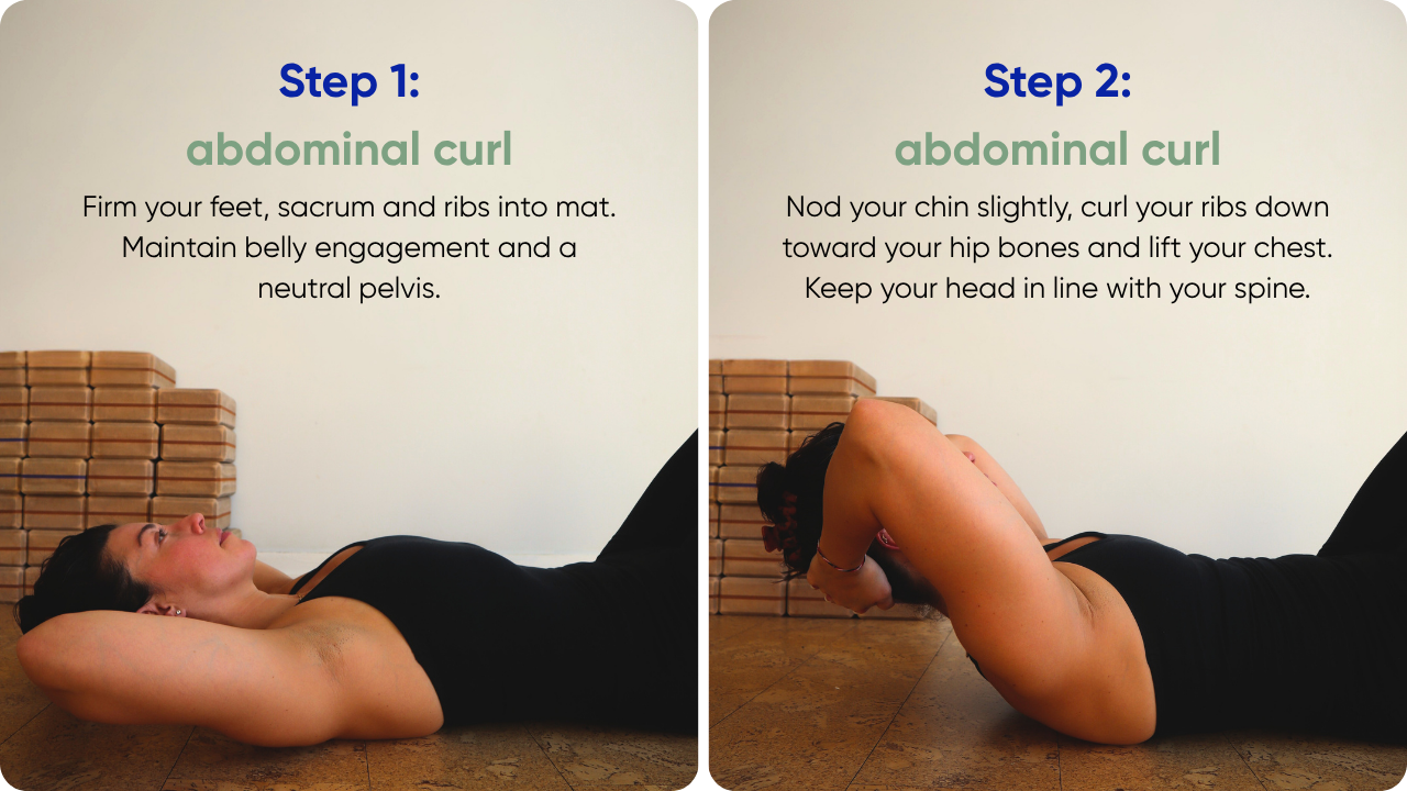 Let's begin with a simple breakdown of core activation as you prepare for an abdominal curl — a fundamental movement in any mat Pilates class or pilates yoga session.