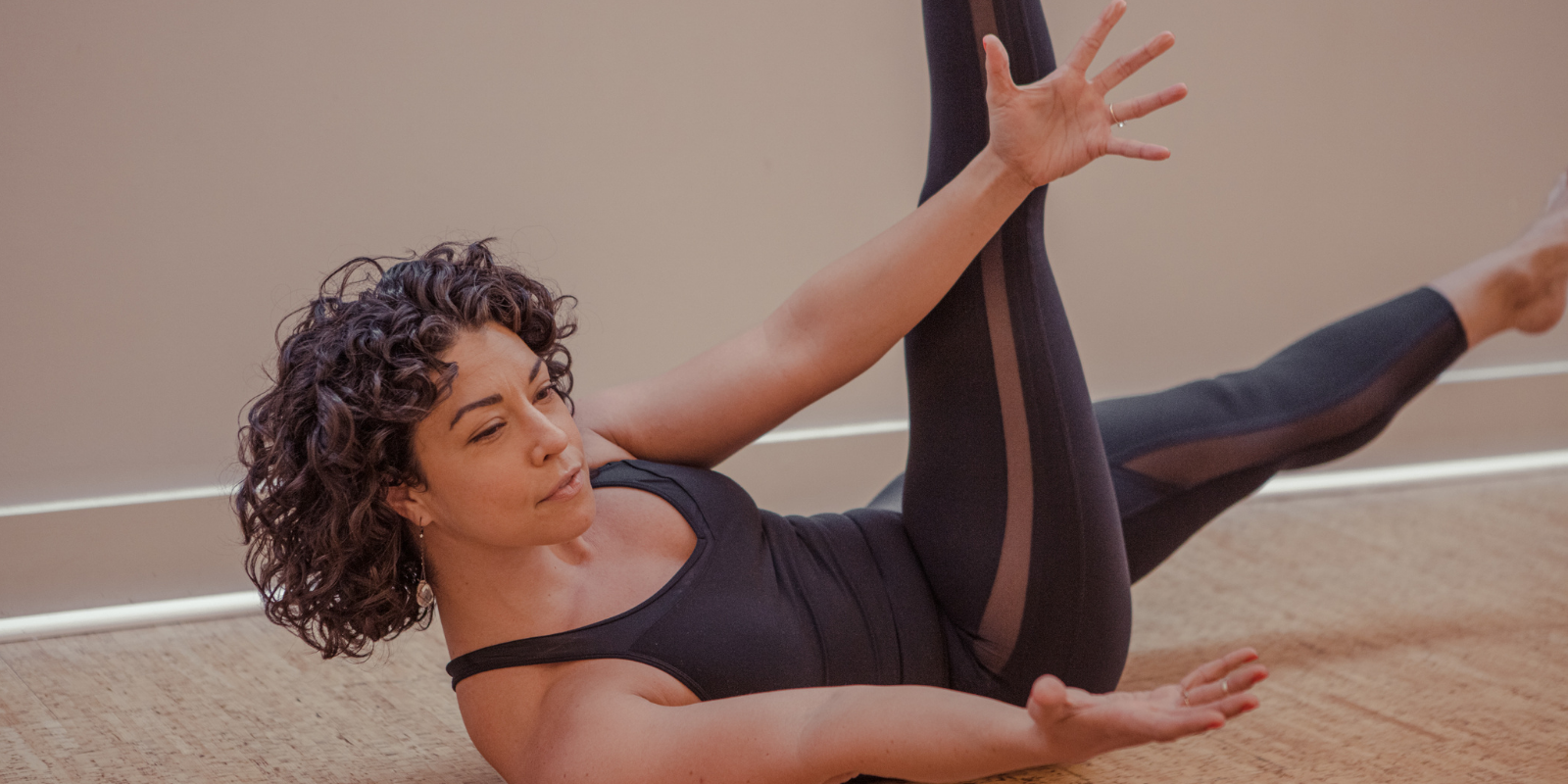 In a pilates yoga fusion class